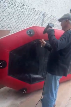 Les trous ou déchirures sont souvent réparés en appliquant un patch d’Hypalon découpé sur mesure, avec des bords arrondis pour éviter l’usure rapide.